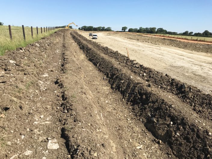 Following jointing and fixing, the CC was hydrated using a 4000-litre bowser and pump. CC reaches 80% strength just 24 hours after hydration, after which time, the anchor trenches were backfilled to bury the material edges, providing a neat termination and preventing any water ingress.