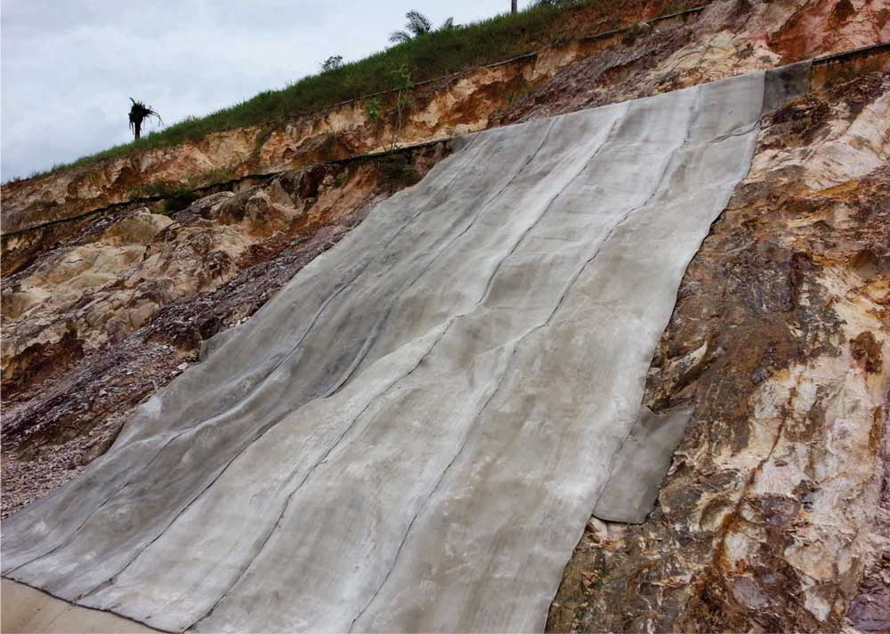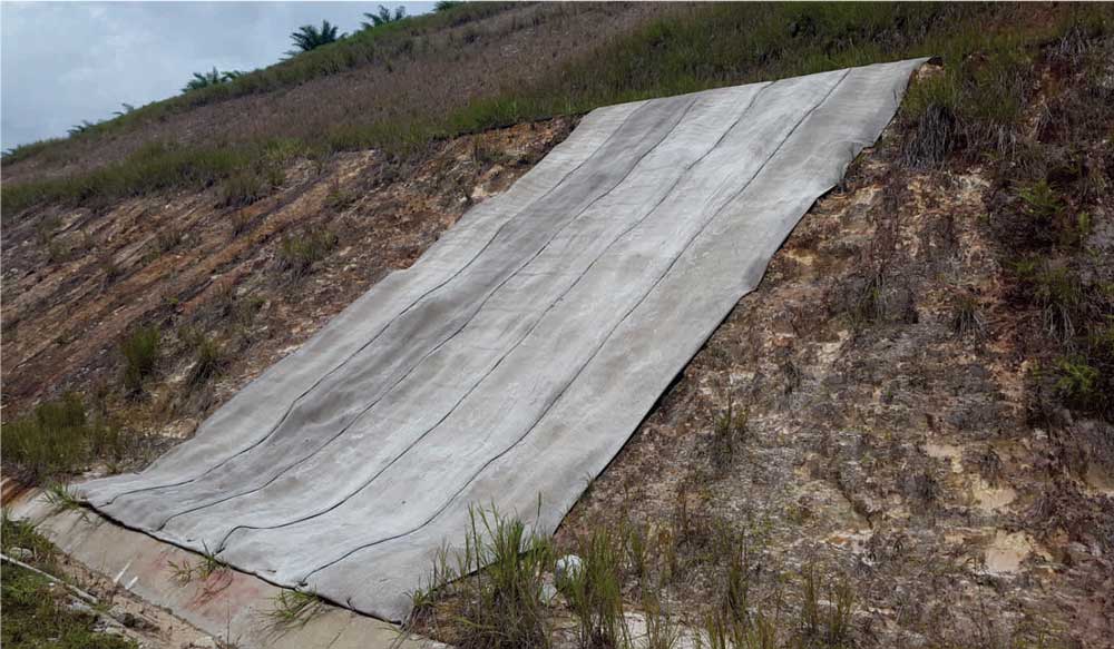 The Public Works Department (JKR HQ) commissioned Kumpulan Daeng Niaga to do a pilot project to determine whether CC can be a suitable method to implement in slope protection and rehabilitation work. Two sites were chosen, each site using 50 sqm of CC. The Slope Unit at the HQ periodically will monitor the sites to collect data and use it for future use.