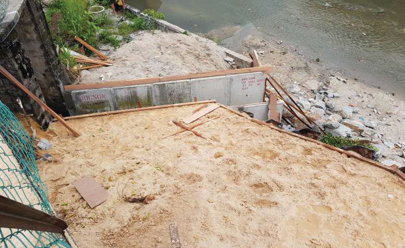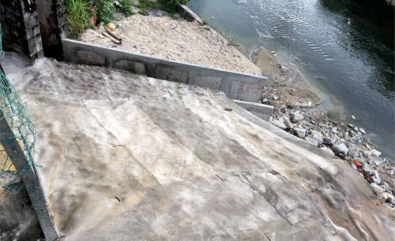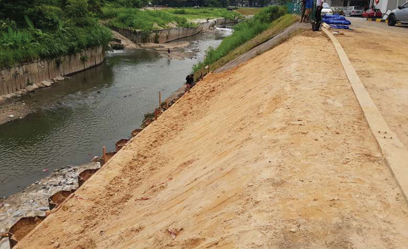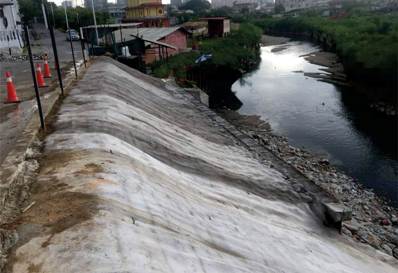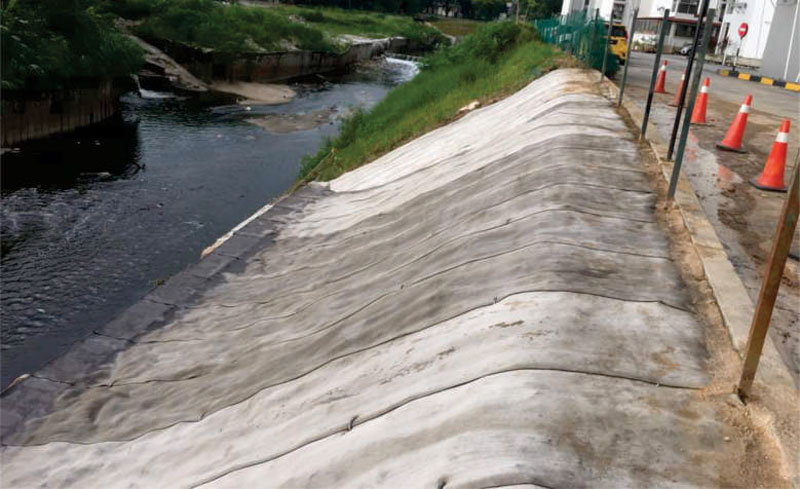 CC was used to protect a slope beside a river. The slope sits adjacent to an apartment complex. The slope was graded and CC was installed and terminated at the piling wall at the toe of the slope.