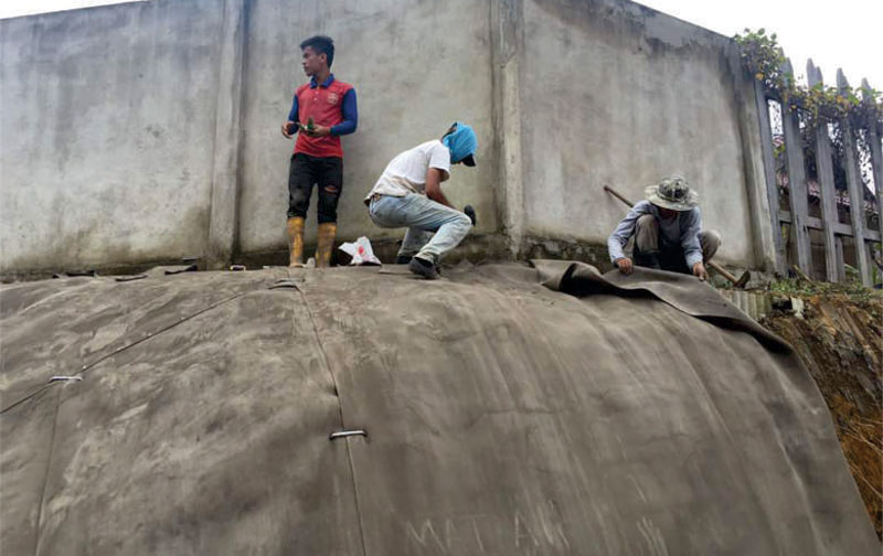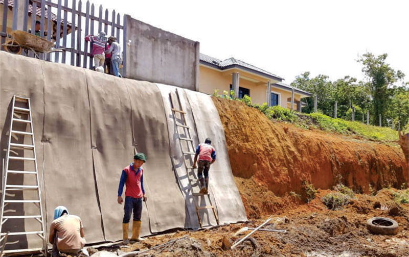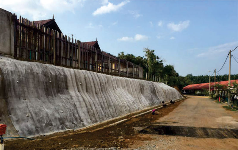 CC was used for slope protection on a slope behind a row of houses and facing a road that leads to a housing area.